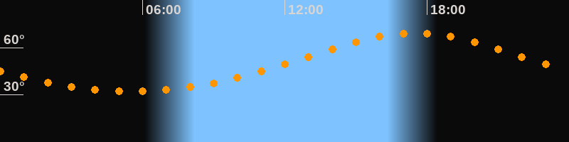 | Höchster Stand (Kulmination) | 17:30 Uhr (h = 69,3°) |