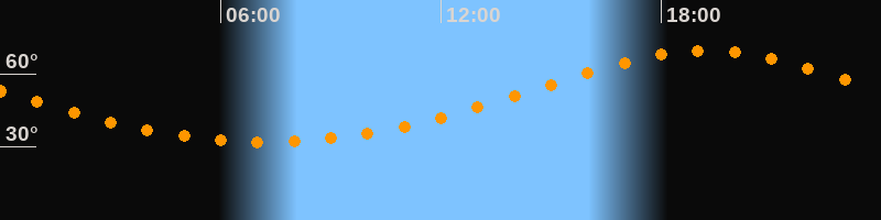 | Höchster Stand (Kulmination) | 19:13 Uhr (h = 69,3°) |