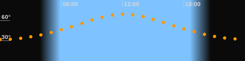 | Höchster Stand (Kulmination) | 12:08 Uhr (h = 69,3°) |