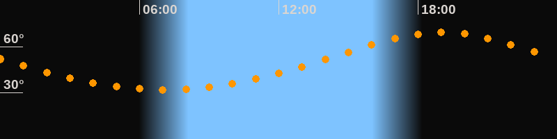 | Höchster Stand (Kulmination) | 19:02 Uhr (h = 69,3°) |
