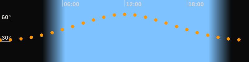 | Höchster Stand (Kulmination) | 11:59 Uhr (h = 69,3°) |
