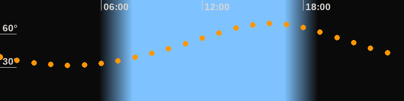| Höchster Stand (Kulmination) | 16:03 Uhr (h = 69,3°) |