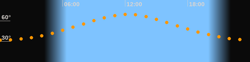 | Höchster Stand (Kulmination) | 12:13 Uhr (h = 69,3°) |