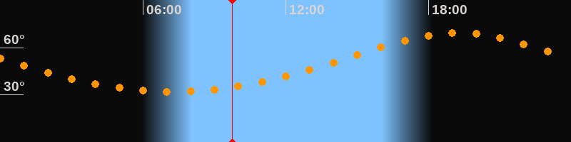 | Höchster Stand (Kulmination) | 19:14 Uhr (h = 69,3°) |