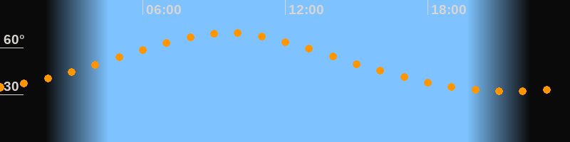 | Höchster Stand (Kulmination) | 09:34 Uhr (h = 69,3°) |