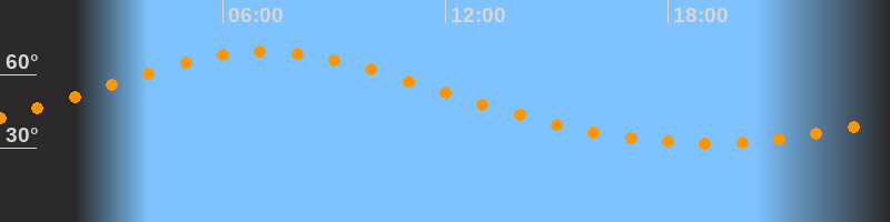 | Höchster Stand (Kulmination) | 07:10 Uhr (h = 69,3°) |