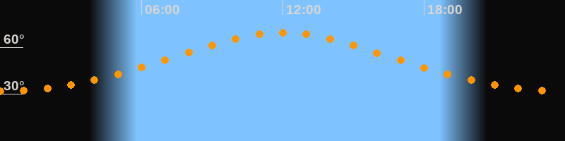 | Höchster Stand (Kulmination) | 11:58 Uhr (h = 69,3°) |