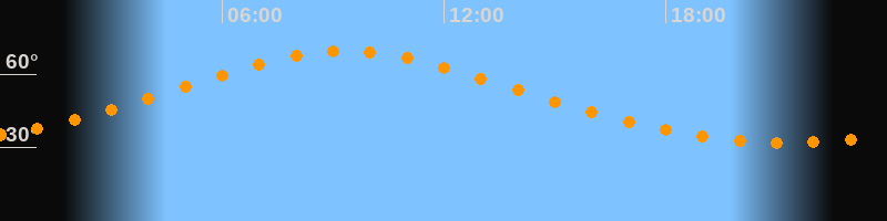 | Höchster Stand (Kulmination) | 09:21 Uhr (h = 69,3°) |
