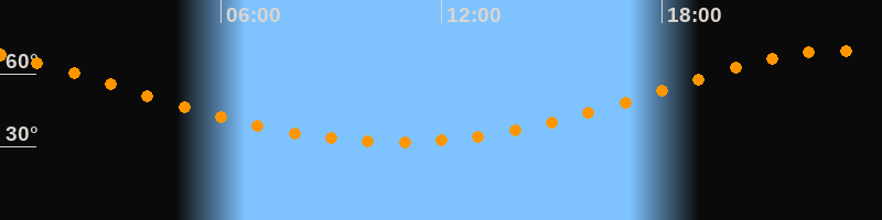 | Höchster Stand (Kulmination) | 22:44 Uhr (h = 69,3°) |