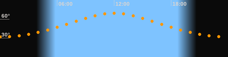 | Höchster Stand (Kulmination) | 12:00 Uhr (h = 69,3°) |