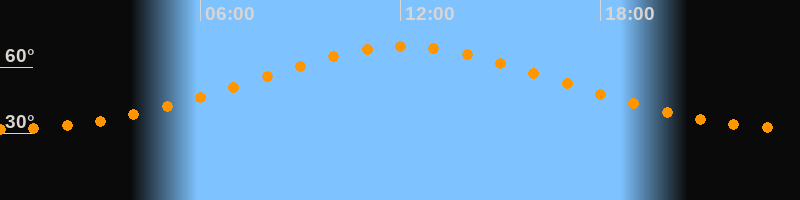 | Höchster Stand (Kulmination) | 12:09 Uhr (h = 69,3°) |