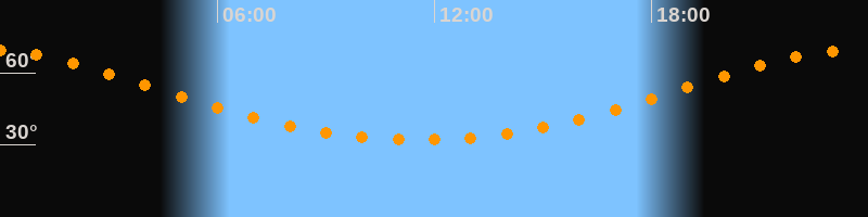 | Höchster Stand (Kulmination) | 23:34 Uhr (h = 69,3°) |