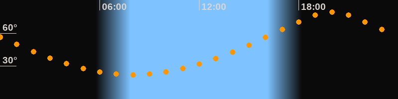 | Höchster Stand (Kulmination) | 20:00 Uhr (h = 79,2°) |