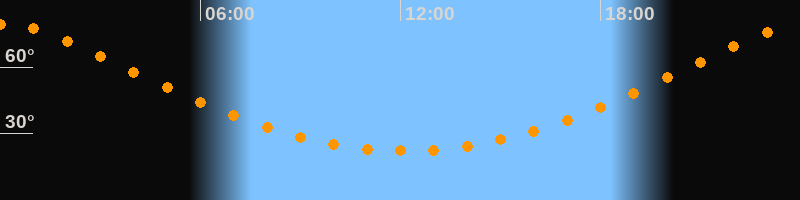 | Höchster Stand (Kulmination) | 00:08 Uhr (h = 79,2°) |
