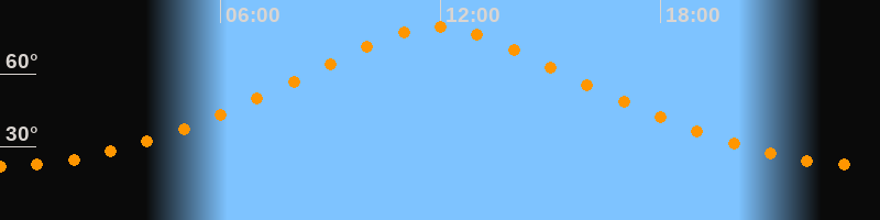 | Höchster Stand (Kulmination) | 11:53 Uhr (h = 79,2°) |