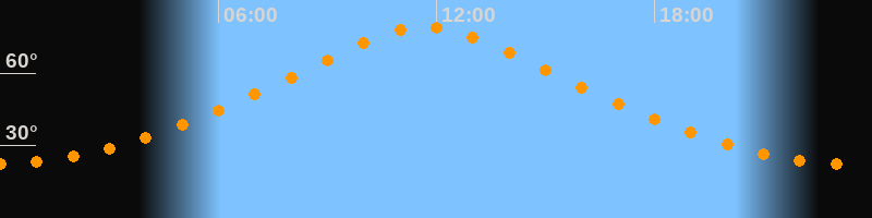 | Höchster Stand (Kulmination) | 11:42 Uhr (h = 79,2°) |
