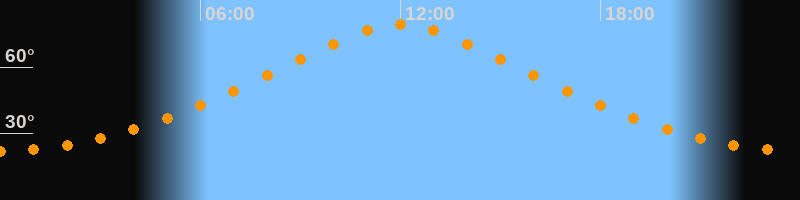 | Höchster Stand (Kulmination) | 11:59 Uhr (h = 79,2°) |