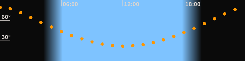 | Höchster Stand (Kulmination) | 00:06 Uhr (h = 79,2°) |