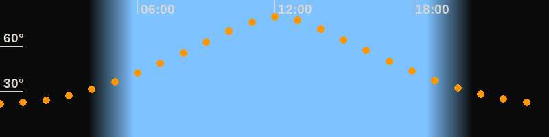 | Höchster Stand (Kulmination) | 12:06 Uhr (h = 79,2°) |