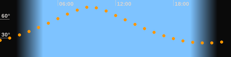 | Höchster Stand (Kulmination) | 09:21 Uhr (h = 79,2°) |