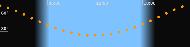 | Höchster Stand (Kulmination) | 23:48 Uhr (h = 79,2°) |