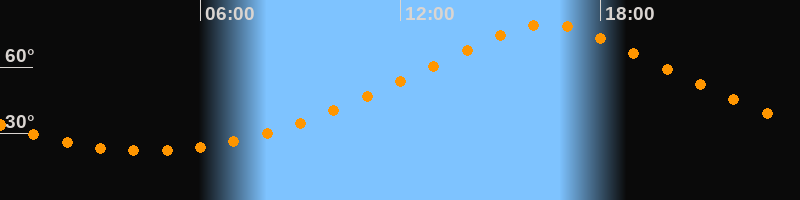 | Höchster Stand (Kulmination) | 16:24 Uhr (h = 79,2°) |