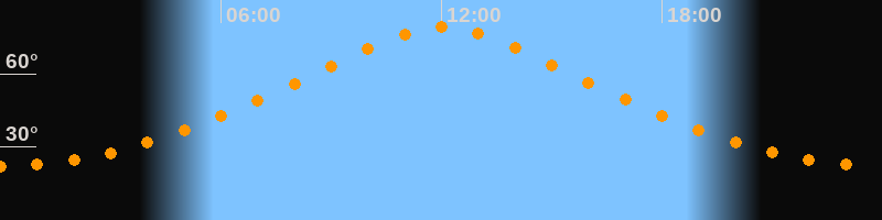 | Höchster Stand (Kulmination) | 12:01 Uhr (h = 79,2°) |
