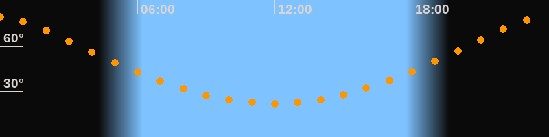 | Höchster Stand (Kulmination) | 23:54 Uhr (h = 79,2°) |