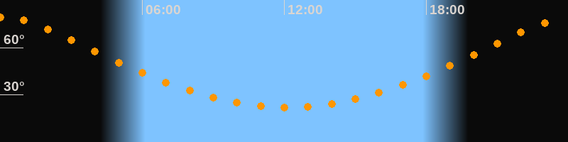 | Höchster Stand (Kulmination) | 00:06 Uhr (h = 79,2°) |