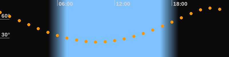22:07 Uhr (h = 77,4°)