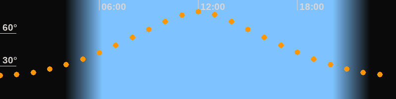 | Höchster Stand (Kulmination) | 12:00 Uhr (h = 79,7°) |