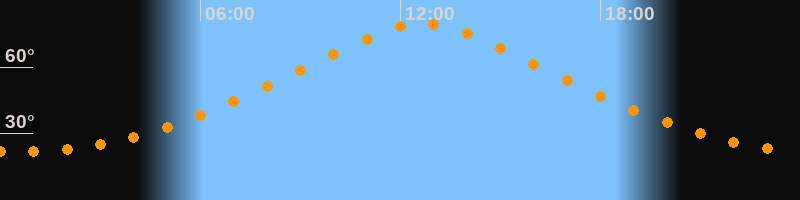 | Höchster Stand (Kulmination) | 12:41 Uhr (h = 79,7°) |