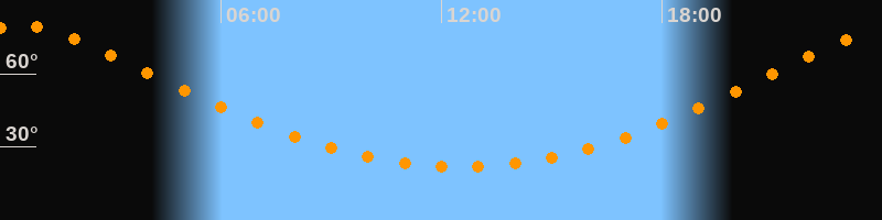 | Höchster Stand (Kulmination) | 00:30 Uhr (h = 79,7°) |