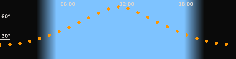 | Höchster Stand (Kulmination) | 12:03 Uhr (h = 79,7°) |