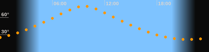 | Höchster Stand (Kulmination) | 09:38 Uhr (h = 79,7°) |