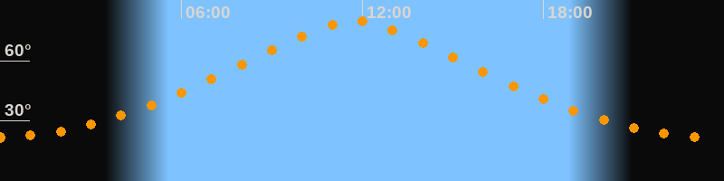 | Höchster Stand (Kulmination) | 11:45 Uhr (h = 79,7°) |