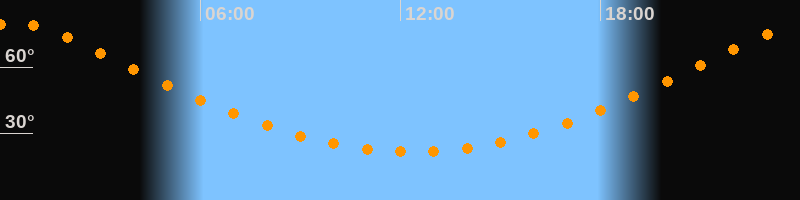 | Höchster Stand (Kulmination) | 00:21 Uhr (h = 79,7°) |