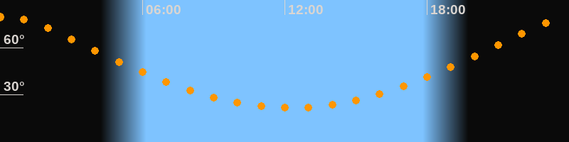 | Höchster Stand (Kulmination) | 00:13 Uhr (h = 79,7°) |