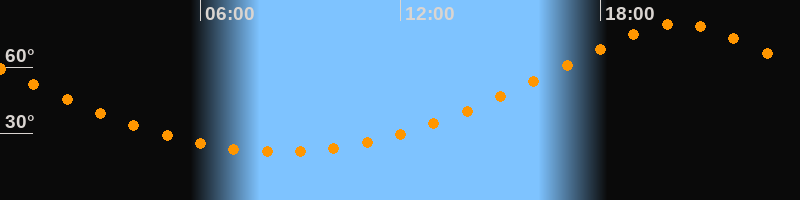 | Höchster Stand (Kulmination) | 20:22 Uhr (h = 79,7°) |