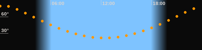 | Höchster Stand (Kulmination) | 00:23 Uhr (h = 79,7°) |
