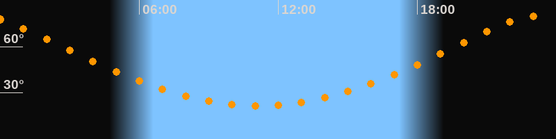| Höchster Stand (Kulmination) | 23:07 Uhr (h = 79,7°) |