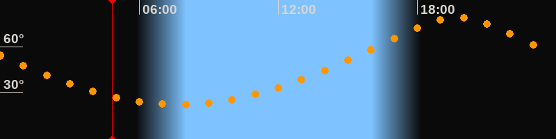 | Höchster Stand (Kulmination) | 19:42 Uhr (h = 79°) |