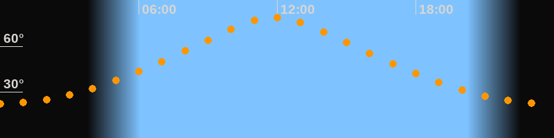 | Höchster Stand (Kulmination) | 11:53 Uhr (h = 79°) |