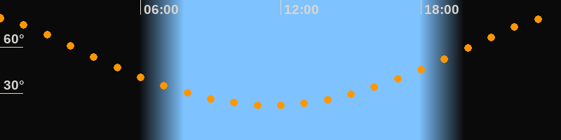 | Höchster Stand (Kulmination) | 23:34 Uhr (h = 79°) |