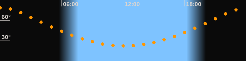 | Höchster Stand (Kulmination) | 00:06 Uhr (h = 79°) |