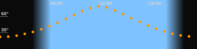 | Höchster Stand (Kulmination) | 12:04 Uhr (h = 79°) |