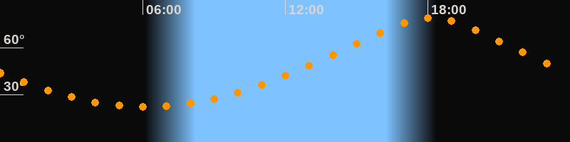 | Höchster Stand (Kulmination) | 18:06 Uhr (h = 79°) |