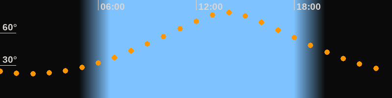 | Höchster Stand (Kulmination) | 13:54 Uhr (h = 79°) |