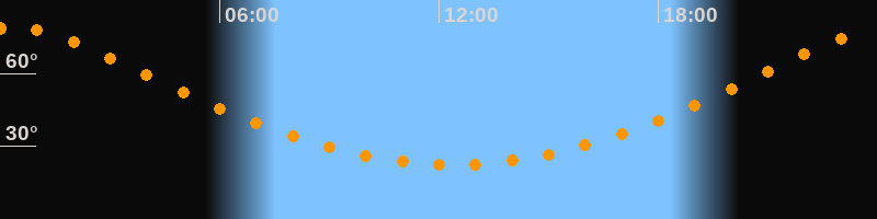| Höchster Stand (Kulmination) | 00:22 Uhr (h = 79°) |