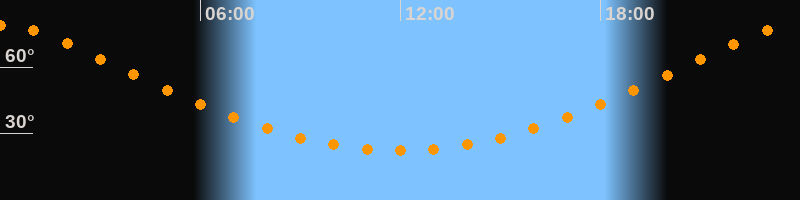 | Höchster Stand (Kulmination) | 23:58 Uhr (h = 79°) |
